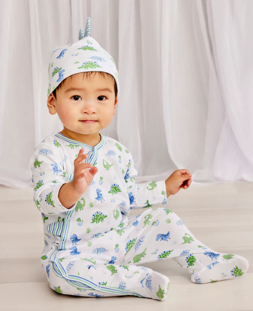 Our fun dino district print covers our cozy footie for your baby. Made from the softest Pima cotton for ultimate comfort.