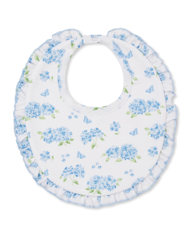 Our blue heavenly hydrangeas print bib is perfect for catching baby's mealtime messes. Made from the softest Pima cotton for ultimate comfort.