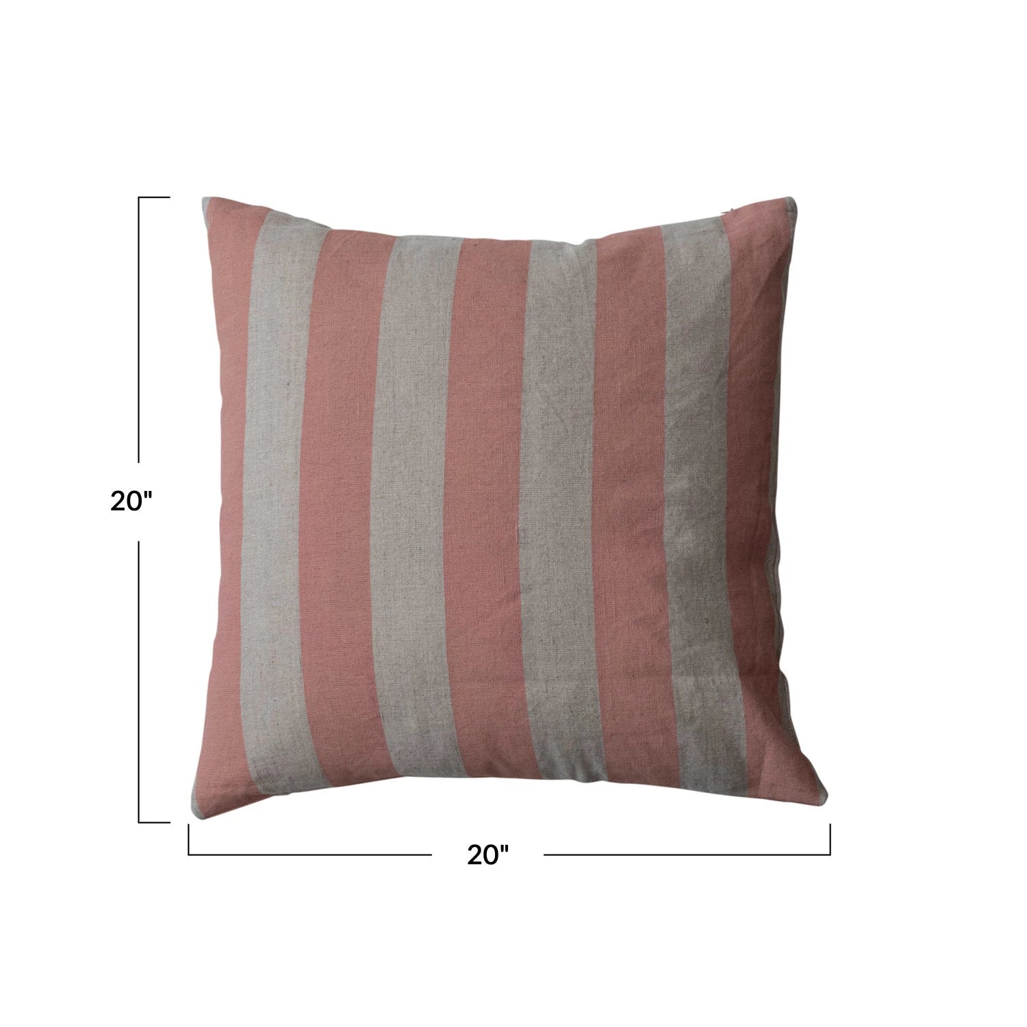 20" Square Cotton & Linen Printed Pillow w/ Stripes