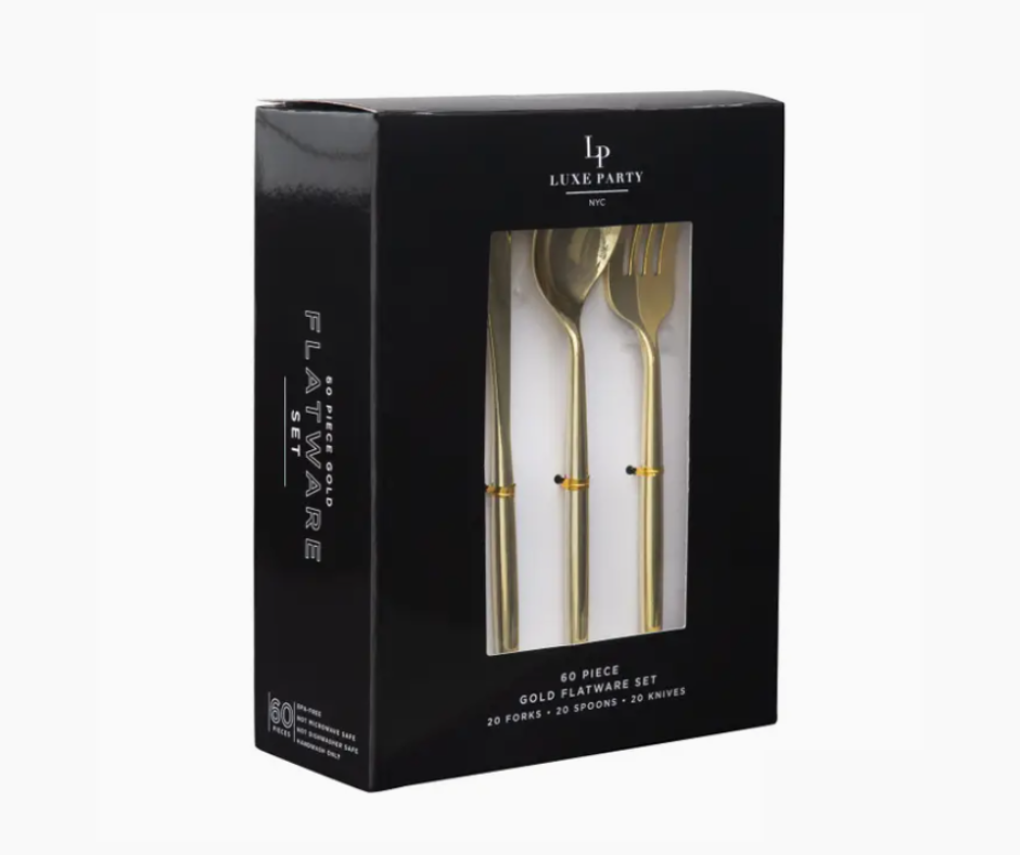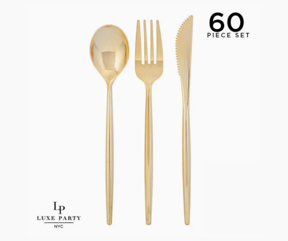 20 Forks | 20 Spoons | 20 Knives - Gold Toned Plastic