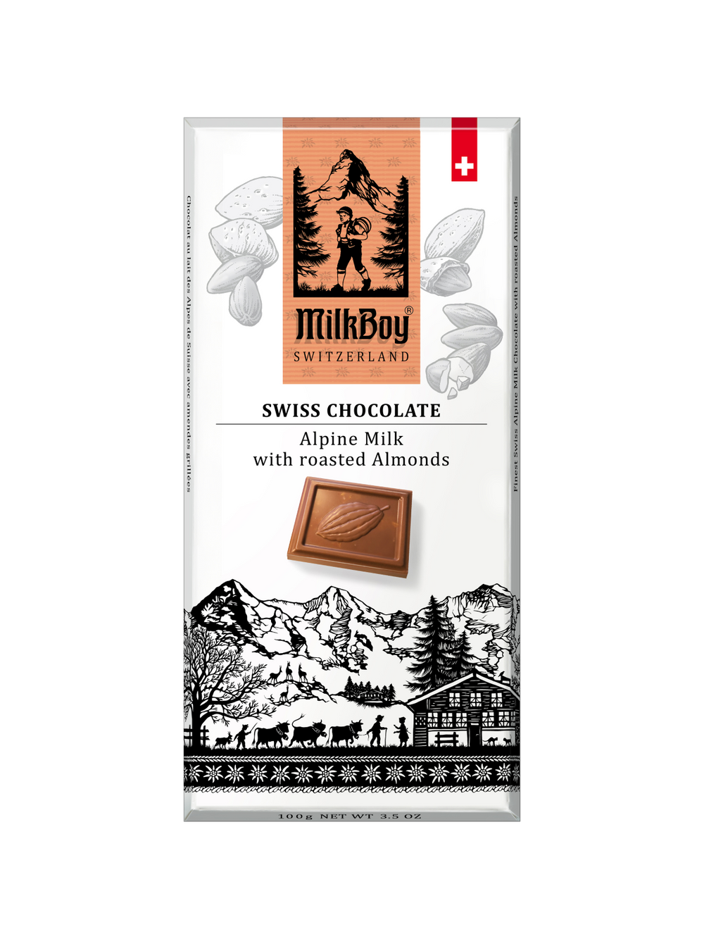 Milkboy Swiss Chocolate Bar- Alpine Milk Chocolate with Roasted Almonds