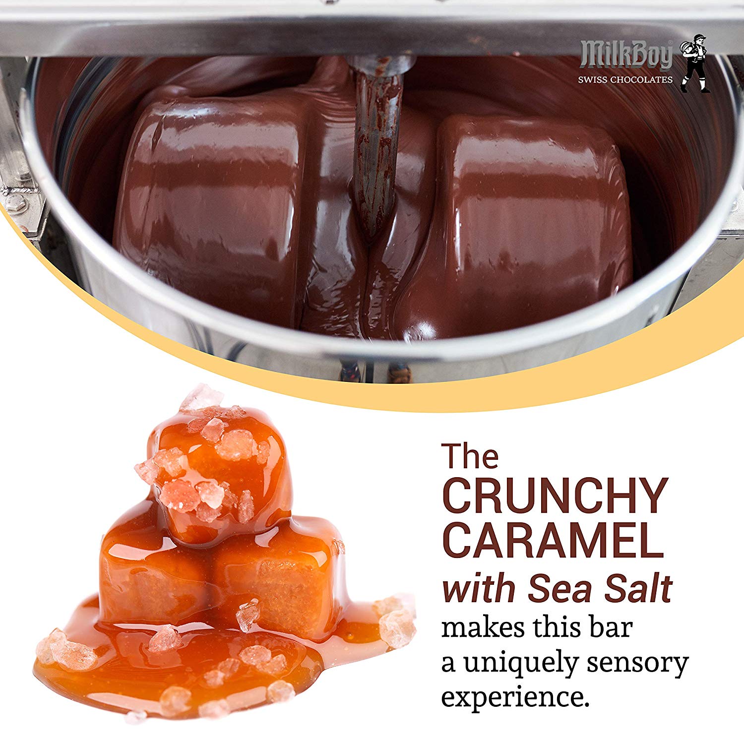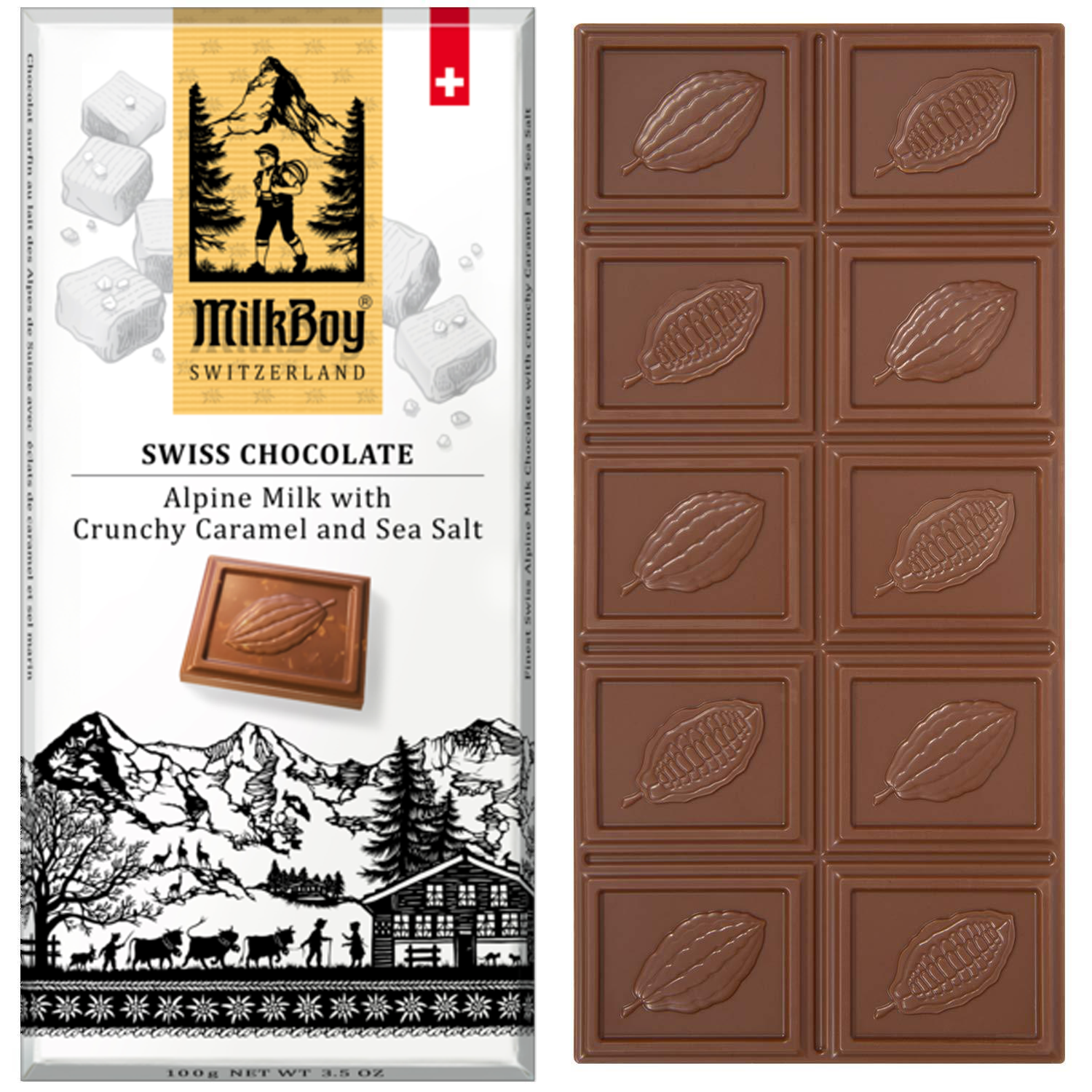 Milkboy Swiss Chocolate Bar- Milk Chocolate with crunchy Caramel and Sea Salt