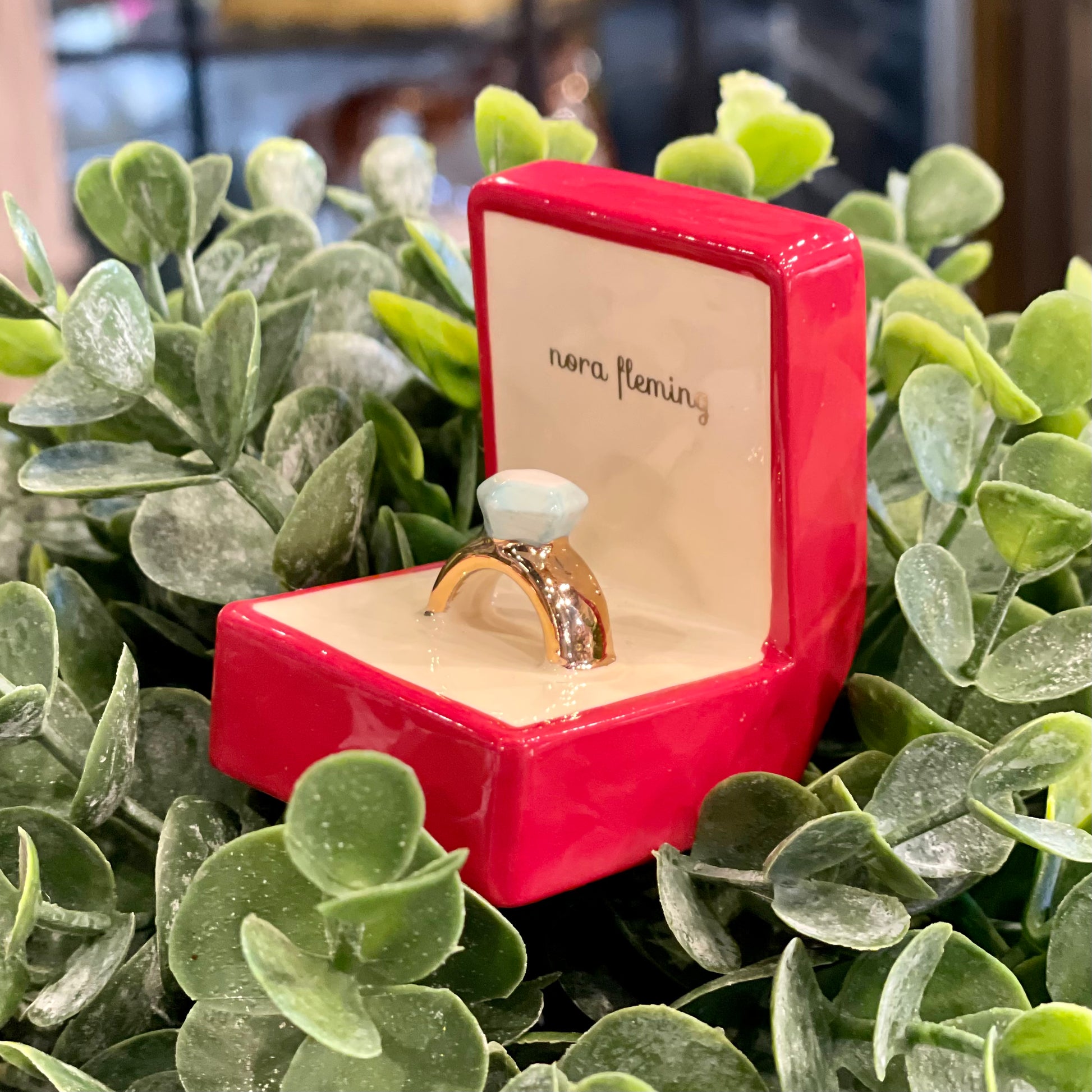 Celebrate one of the happiest days of your life with the Nora Fleming Diamond Ring Mini! This gorgeous engagement ring & red box is perfect for celebrating a recent engagement or wedding in style.