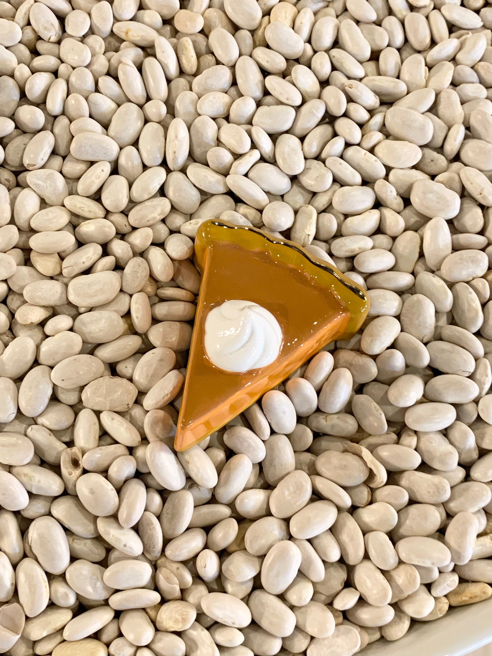 indulge in pure autumnal bliss with this pumpkin pie slice mini. it's intricate detailing, and mouthwatering appeal will leave you craving more fall minis to add to your collection.