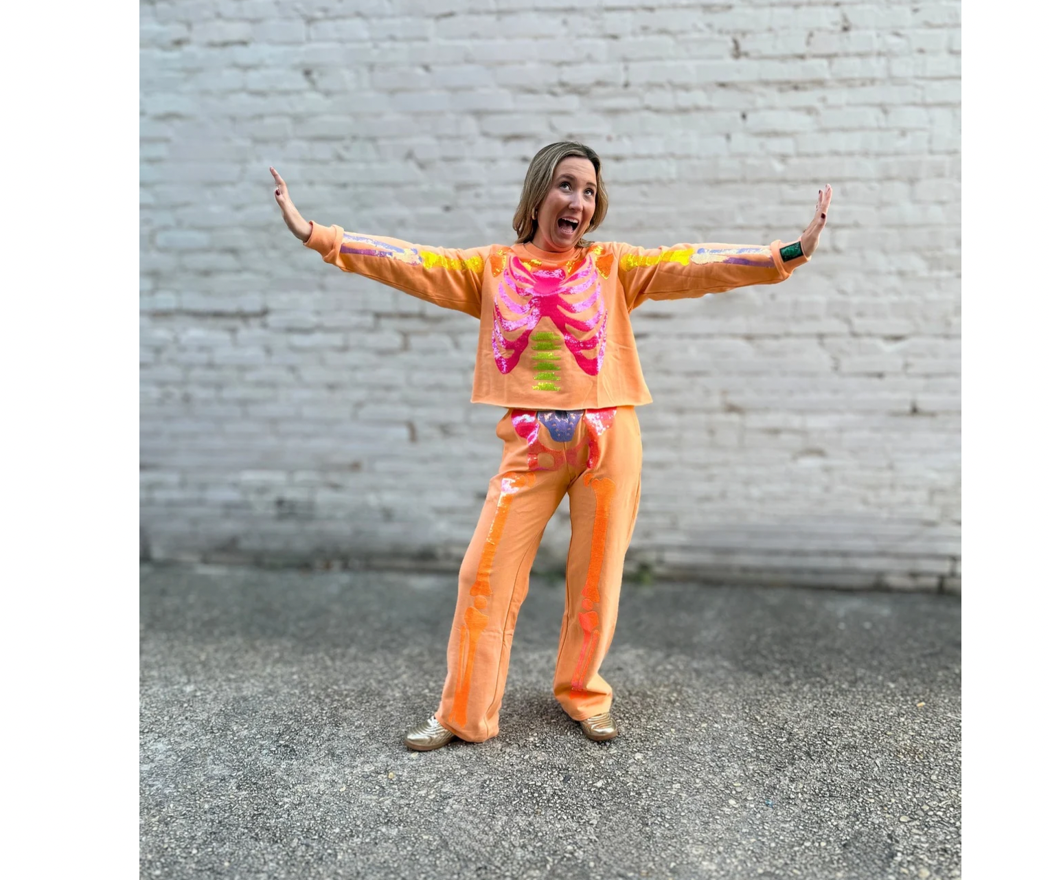 QOS Neon Orange Skeleton Sweatpants