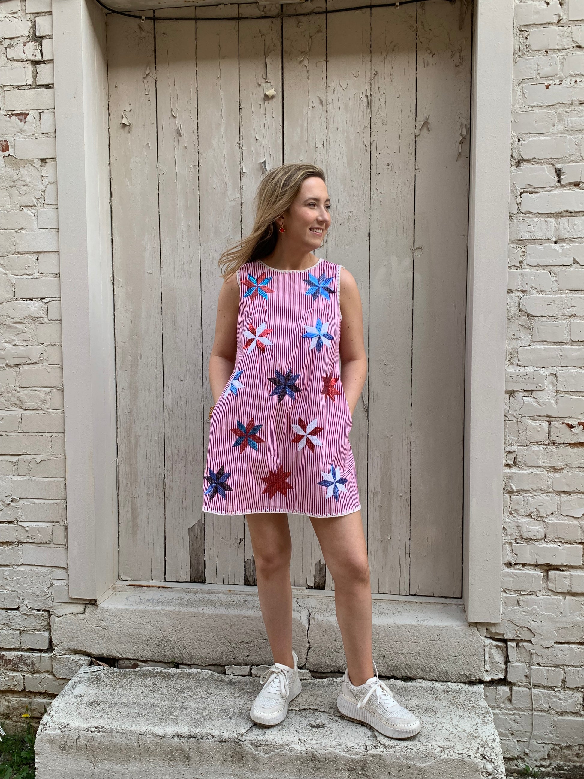 Red and White Stripe Tank Dress