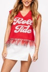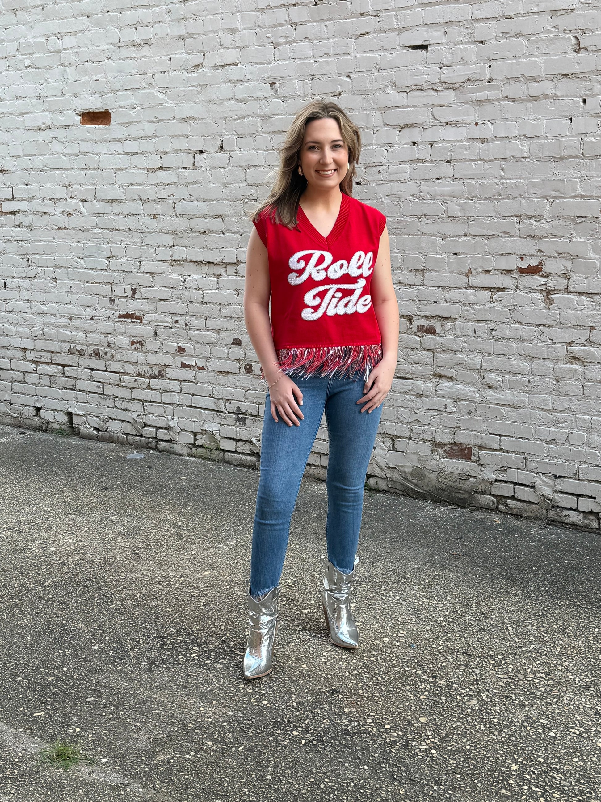 Red Knit Sweater Tank with Feather Fringe Bottom