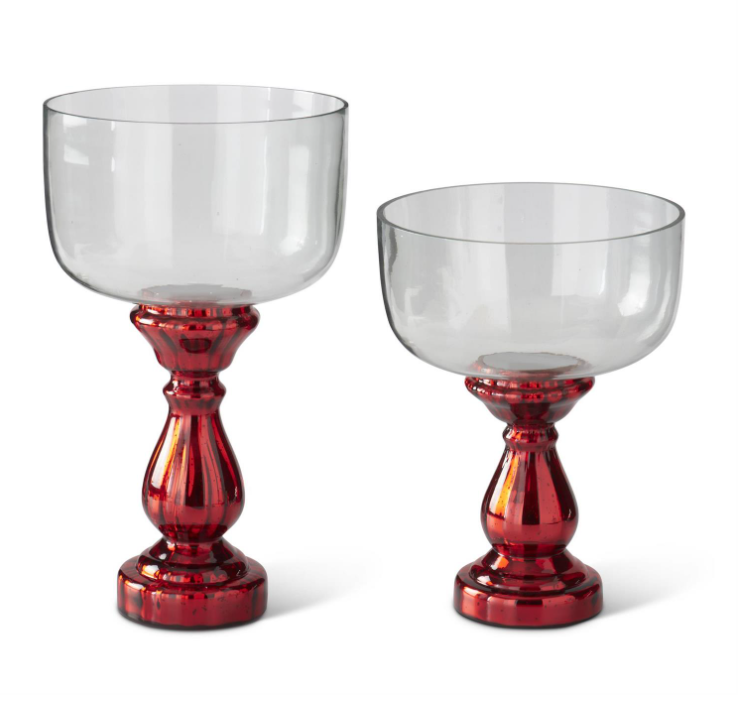 Red Mercury Glass Pedestal Bowls