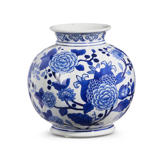Round Blue and White Floral Vase